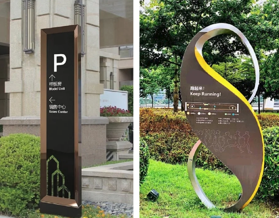 重庆户外标识标牌设计制作要点 1. 独特性。重庆户外广告的对象是动态中的行人,行人通过可视的广告形象来接受商品信息,所以重庆户外广告设计要统盘考虑距离、视角、环境三个因素。在空旷的大广场和马路的人行道上,受众在10米以外的距离,看高于头部5米的物体比较方便。所以说,设计的第一步要根据距离、视角、环境三因素来确定广告的位置、大小。